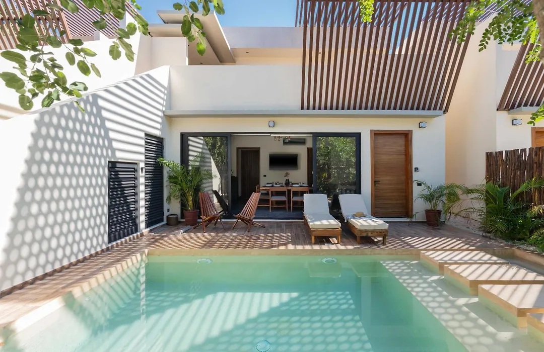 Villas Asana Leaf Tulum Pueblo bevindt zich in de wijk La Veleta van Tulum Pueblo, binnen 4 km van het Las Palmas Strand, en beschikt over een zwembad waar gasten kunnen ontspannen. In de villa biedt een terras uitzicht op de tuin, evenals een zwembad.